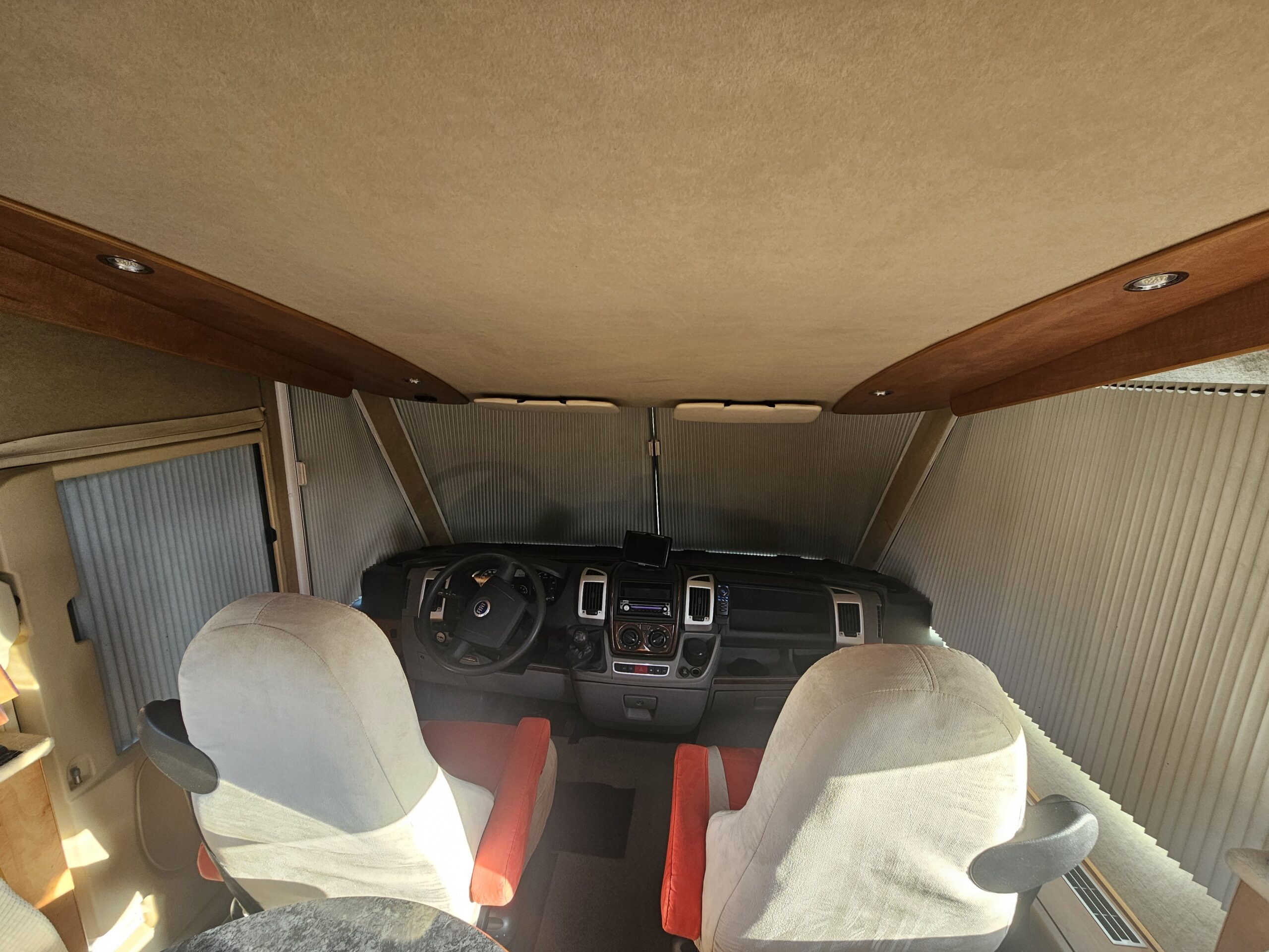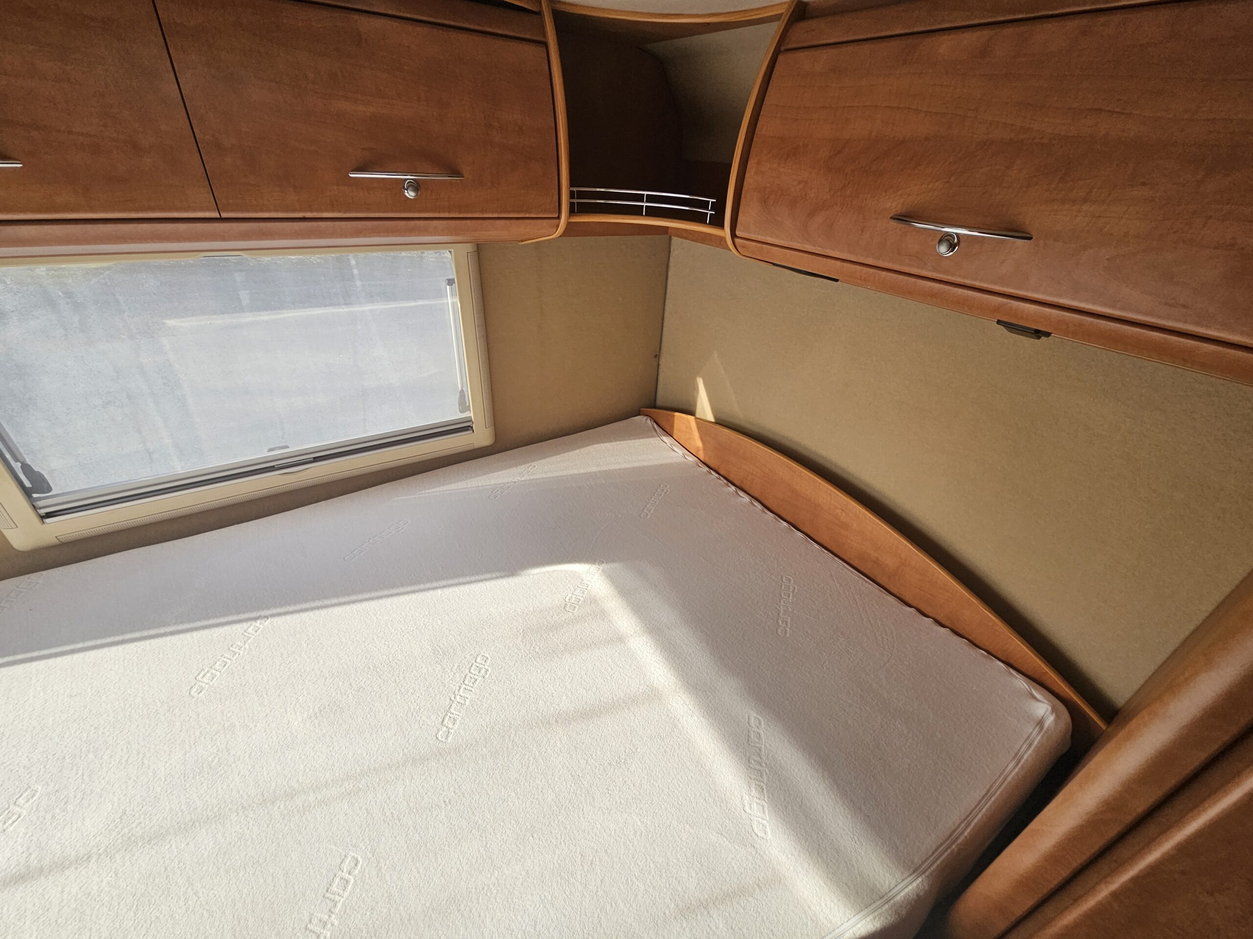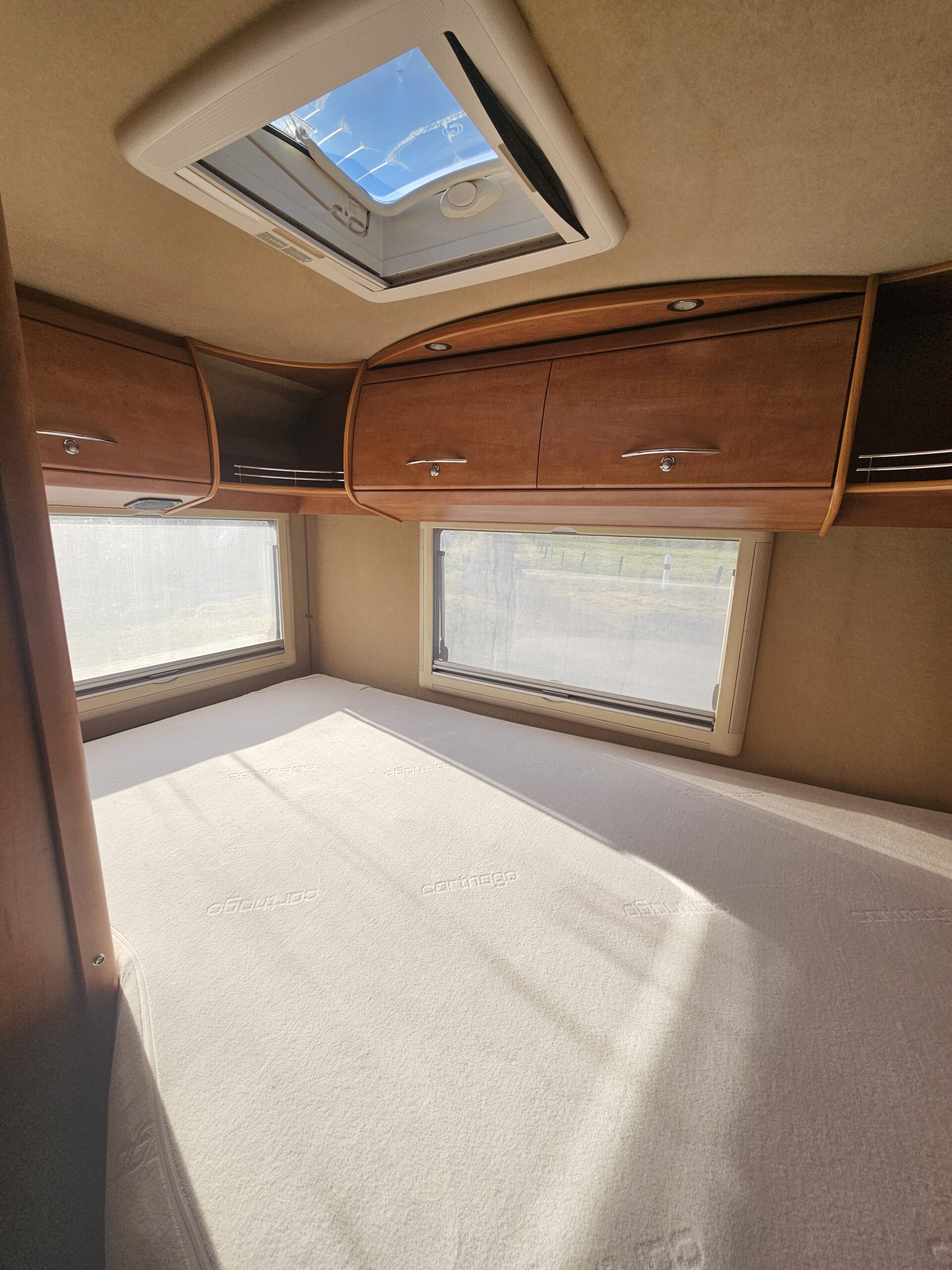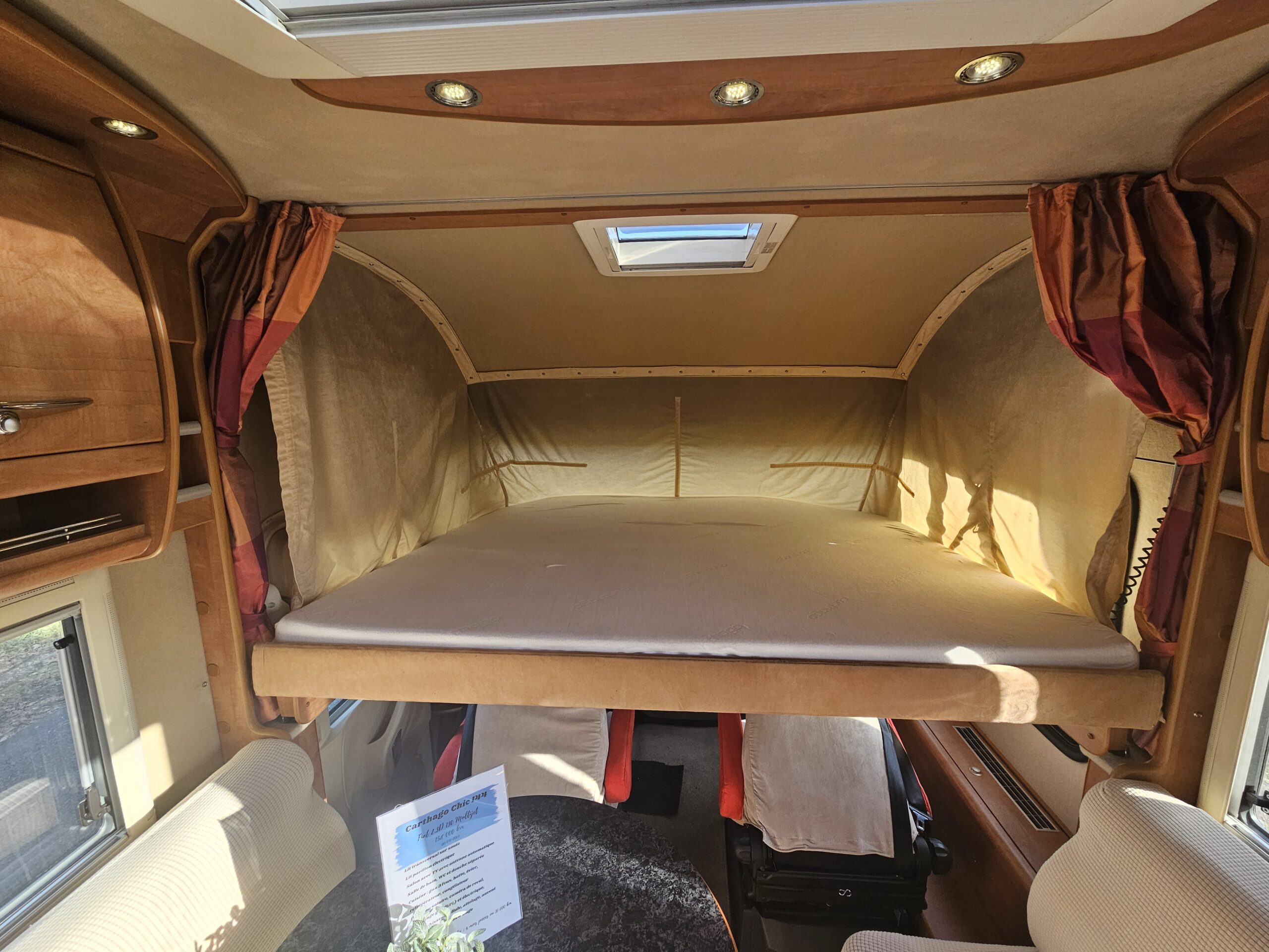 Un second couchage de 2 personnes est possible grâce au lit pavillon électrique présent au dessus du poste de conduite.